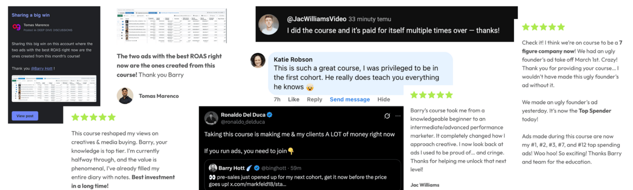 I don’t know what you’re waiting for: join Building Ads with Barry now, this is your last chance to join this cohort! Enrollment closes today! Our first live workshop and Q&A kicks off Thursday. Can’t wait to see you in there! Don’t miss out!